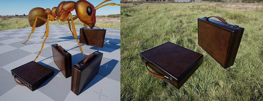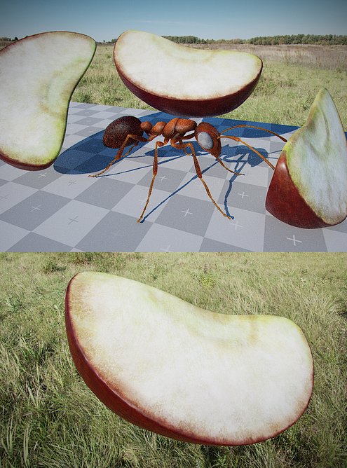 The ants are first introduced as ordinary insects going about their everyday activity on the surface, collecting food and fruit in a familiar, natural setting. As the camera follows them underground, that expectation is gradually subverted, revealing a fully developed ant civilization beneath the surface. This hidden world features ants outfitted in small construction-style gear and an expansive subterranean city, complete with large-scale infrastructure such as a magnetic bullet train. The contrast between their simple surface behavior and the complexity of their underground society was central to the visual storytelling of the sequence.