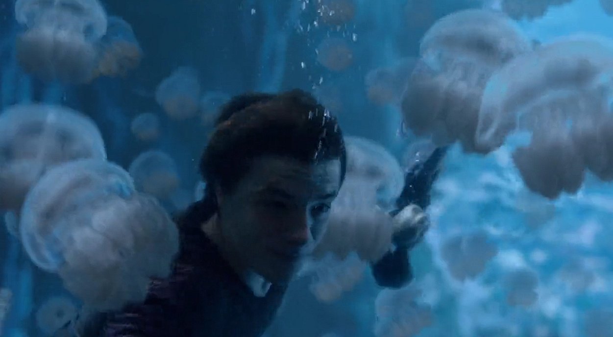 I gathered and textured a variety of ambient fish and other sea creatures to populate the seafloor and provide subtle, dynamic movement in shots as needed. Most of the work focused on the jellyfish, which required a more detailed approach for shots where they served as hero elements. The design was inspired by the Palau Lake jellyfish, and included careful attention to translucency, movement, and "jelly" qualities to ensure they read believably on screen while integrating seamlessly with the environment.