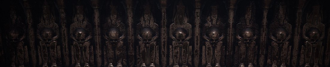 The central part of the room focuses around a large reliquary object which is adorned with what appears to be a giant skull with horns and lots of detailed carvings adorned on it. I gave the central skull embedded eyes that appear to be closed as if sleeping and that they could wake up at any moment. Thought that was a cool, creepy touch!